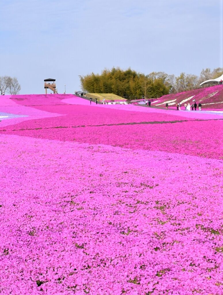 市貝町・芝ざくら公園には、約18000㎡の面積に4色約28万株の芝ざくらが植栽されています。